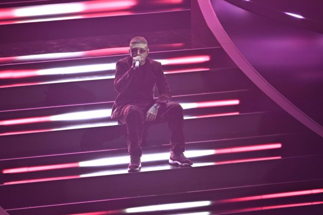 Tananai: 5 – Completo gessato blu e rosso con stemma sul bavero, un po’ troppo divisa di Grifondoro in Harry Potter ma anche un po’ American Psyco. Bocciato.