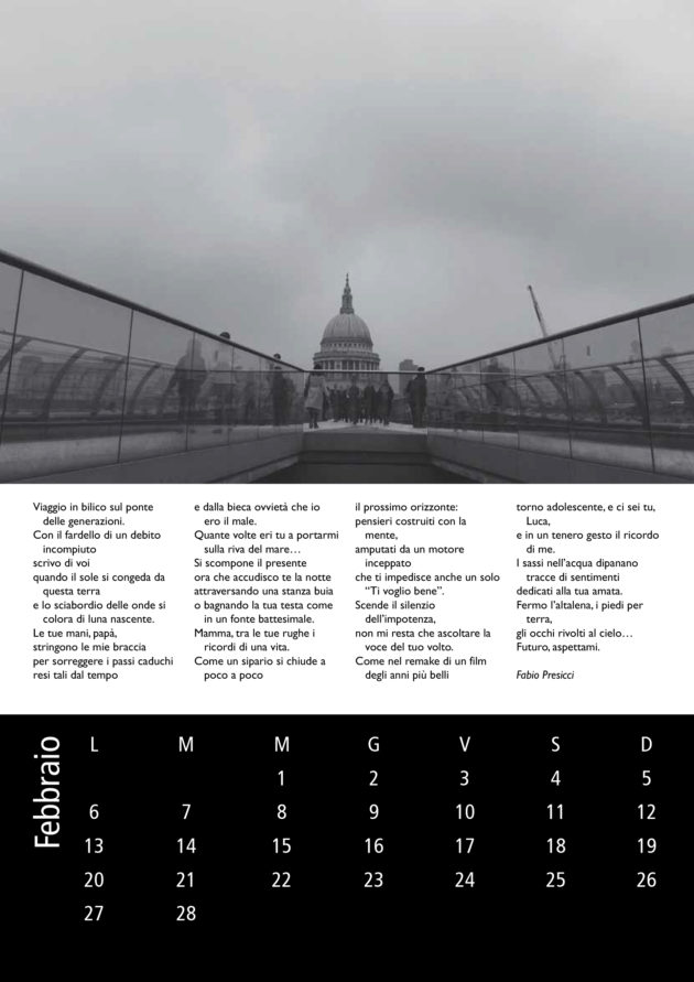 All’iniziativa prendono parte dieci volontari, un piccolo gruppo che negli anni si è innamorato del progetto e ha affiancato Ceruti: il giornalista e poeta Alberto Figliolia, da 15 anni co-coordinatore del laboratorio; Gerardo Mastrullo che con la sua casa editrice “La vita felice” ha pubblicato dieci antologie, raccogliendo i testi scritti durante il laboratorio. Queste opere ospitano le prefazioni di alcuni importanti nomi della cultura italiana, e non solo. Tra questi, Umberto Veronesi, Marco Garzonio, Maurizio Cucchi e Vito Mancuso. Infine, il gruppo di volontari può contare sulle fotografie di Margherita Lazzati, grazie al cui lavoro, da oltre dieci anni, viene realizzato il “Calendario poetico” – l’edizione del 2023 verrà presentata il 21 febbraio, dalle ore 16 alle ore 19, nella sala Alessi di Palazzo Marino, a Milano.