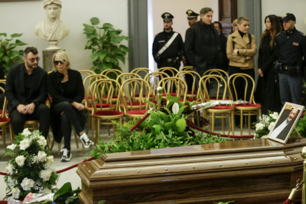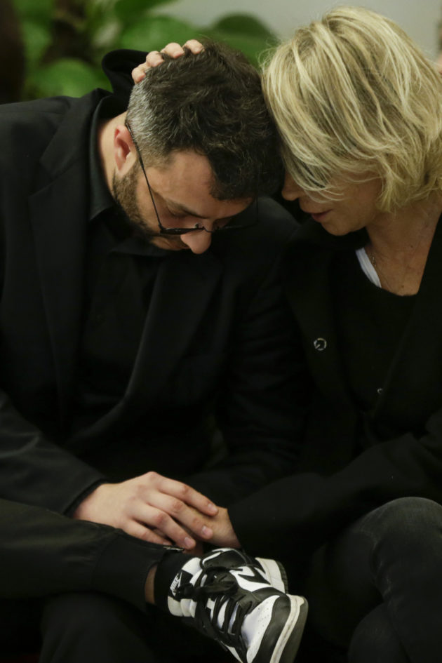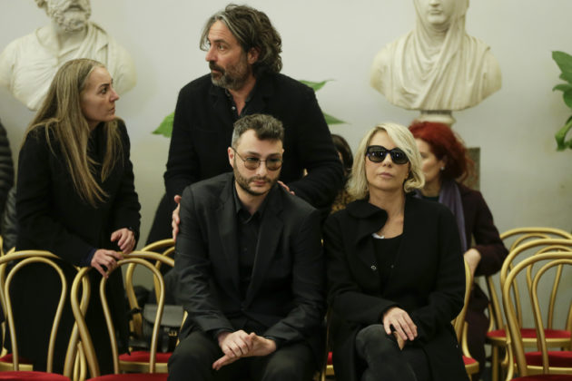 Maria De Filippi arriva con il figlio Gabriele alla camera ardente allestita in Campidoglio per il marito Maurizio Costanzo. I due passano da un ingresso laterale per evitare la folla in fila. Completo e occhiali neri, la conduttrice siede in prima fila con il figlio che lei e Maurizio Costanzo adottarono nel 2004.