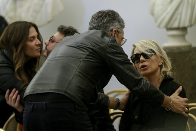 Foto Cecilia Fabiano /LaPresse - Roma Italia - Camera Ardente di Maurizio Costanzo Nella Foto : La camera Maria De Filippi , Gabriele Costanzo February 25, 2023 Rome Italy — Burial Chamber of Maurizio Costanzo in the Photo : The Burial Chamber in Capitol