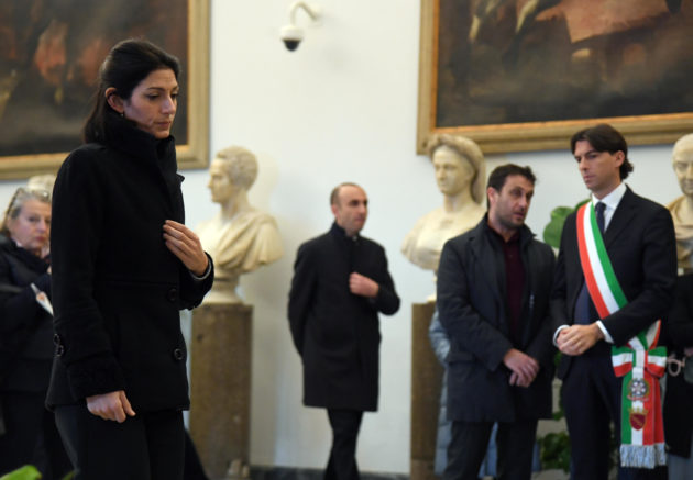 Virginia Raggi alla camera ardente di Maurizio Costanzo allestita presso la Sala della Protomoteca in Campidoglio