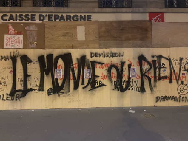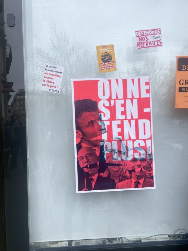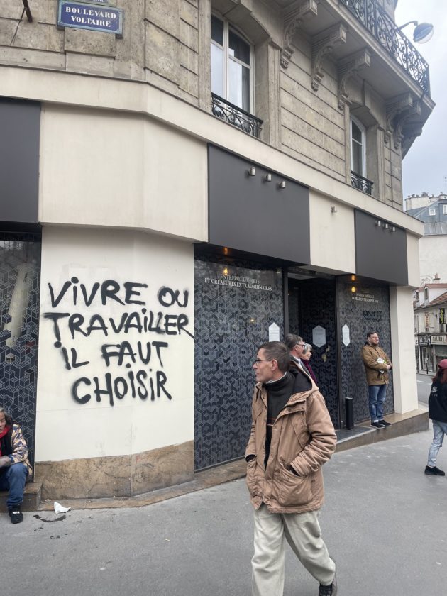 Non c’è una sola battaglia – Il sostegno è trasversale, anche perché ormai la piazza ha raccolto e accolto il malcontento di tante e diverse fasce della popolazione. E ne ha inglobato le rivendicazioni. “Chi l’avrebbe mai detto, la convergenza delle lotte”, recitava provocatorio il cartello di un gruppo di scienziati in sciopero in uno degli ultimi cortei. Ed è esattamente la fotografia di quello che sta succedendo. Si protesta certamente contro la riforma delle pensioni, ma di conseguenze anche contro il sistema neo-liberale e lo smantellamento del welfare a livello europeo. Per l’aumento dei salari, contro l’inflazione e perché si intervenga contro le diseguaglianze. Quindi, perché si agisca al più presto contro l’emergenza climatica. A unire le contestazioni, la percezione che manchi il tempo e che si debba agire il più in fretta possibile. E non solo. Dalla piazza e nei cortei emerge anche la richiesta che la protesta superi i confini nazionali. “Fuoco alle frontiere”, è un’altra delle scritte comparse sui muri. I francesi che protestano sanno che la loro contestazione, da sola, non può bastare. E guardano a quello che succede nelle piazze in Gran Bretagna, Germania, Grecia. E a quello che non sta succedendo, invece, in Italia.