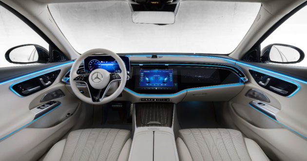 Le grandi novità che la casa con la Stella propone sulla macchina sono tecnologiche con richiami molto limitati alla gamma elettrica EQ. La nuova Classe E dispone del più avanzato sistema di infotainment MBUX, anche se lo schermo per il passeggero resta a richiesta. La gestione del dispositivo e dei display è stata accentrata in un un unico elaboratore capace di migliorarne le prestazioni e di supportare meglio applicazioni come Webex, Zoom, Angry Birds e TikTok.