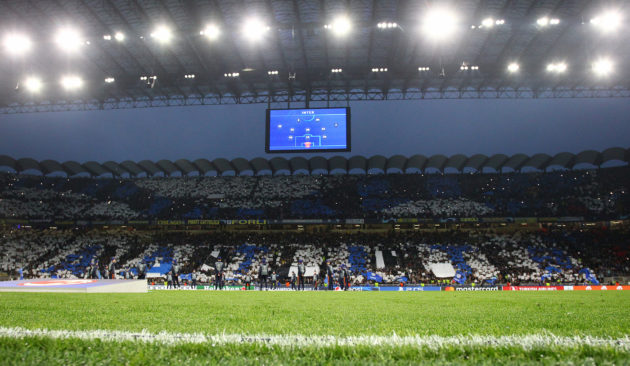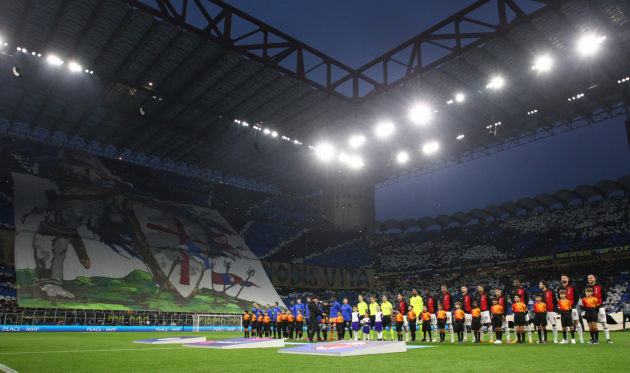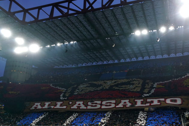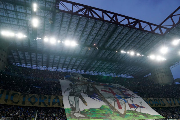 Inter-Milan, un soldato crociato lungo la Nord: a San Siro lo spettacolo delle coreografie – Foto