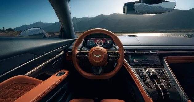 Ma torniamo alla DB12. Se per la carrozzeria si è scelta la via della continuità stilistica, all’interno il cambio generazionale è più evidente: nell’abitacolo, infatti, spicca un sistema infotelematico tutto nuovo, composto da un display da 10,2 pollici; un altro, di medesime dimensioni, fa da cruscotto della strumentazione. Sulla plancia obliqua, dietro al display dell’infotainment, sono presenti i comandi per il controllo delle funzioni di climatizzazione, del cambio e delle varie modalità di guida. A richiesta l’impianto audio by Bowers & Wilkins con 15 diffusori e 1.170 Watt di potenza.