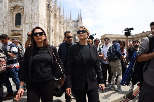 Il colpo d’occhio del Duomo di Milano è ad effetto. Una folla composta in abito scuro siede composta tra i banchi della cattedrale per i funerali di Stato di Silvio Berlusconi, il leader di Forza Italia scomparso il 12 giugno all’età di 86 anni. Abiti scuri, perle, diamanti e qualche veletta. Prevale una rigorosa eleganza, quella del total black, in segno di lutto. In prima fila siedono i figli dell’ex premier, Marina, con gli occhiali scuri a schermare il suo dolore, Pier Silvio, in un completo blu notte con cravatta nera, Barbara, con un cerchietto nero, Eleonora, con la veletta, e Luigi, in completo grigio e cravatta nera. E poi la compagna del Cavaliere, Marta Fascina, con un tailleur nero con camicia in organza blu scuro e capelli raccolti. Un tocco di bianco spicca: è Maria De Filippi, che – seduta accanto a Silvia Toffanin, la compagna di Pier Silvio, in abito nero -, indossa una camicia bianco candido. La scelta della conduttrice non è passata inosservata e, come ha spiegato la giornalista del Tg5 Cesara Buonamici, è legata ad una precisa volontà di Berlusconi: “Lui diceva sempre: ‘Vestitevi di chiaro e se potete portate i capelli biondi perché quelli scuri non fanno passare la luce’, lo diceva sempre anche a me”, ha detto durante la diretta. Un tocco di bianco anche per la presidente del Consiglio Giorgia Meloni, che sotto alla giacca nera indossa anche lei una maglia chiara: una parure di diamanti completa il look, illuminandole il viso con preziosi orecchini pendenti. Anche la madre di Marta Fascina, seduta in seconda fila assieme alla famiglia Berlusconi, ha un tailleur blu e blusa bianca.