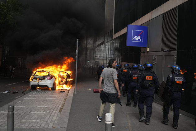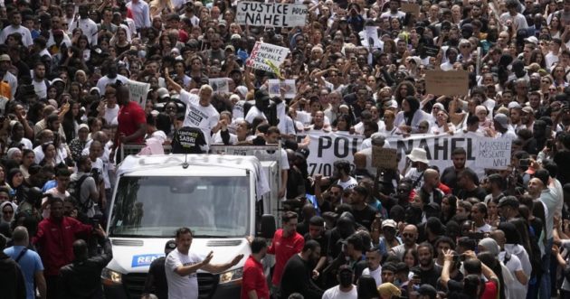 Nanterre, rivolta durante marcia per il 17enne ucciso dalla polizia: scontri e auto in fiamme. Bus e tram fermi dalle 21 per l’ordine pubblico