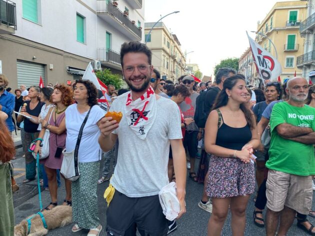 Ma in questo sabato agostano c’è pure un pezzo di Puglia: “Siamo contrari a tutte le opere palesemente inutili come questa”, dice Cosimo Quaranta, arrivato da Brindisi con un grande striscione giallo: “Puglia per il clima, fuori dal fossile”. E sono tanti i temi per cui si sfila a Messina: si manifesta anche per il salario minimo, per dire ‘no’ all’autonomia differenziata e per aprire i porti ai migranti. “Tutti temi cari alla Lega”, chiosa Francesco, arrivato da Catania per riempire “le file della lotta”. Temi nazionali, e a sfilare c’è pure la Cgil e ci sono i partiti. “Noi siamo contro gli sprechi e questa idea di ponte perché non si realizzerà mai, serve solo per alimentare sprechi, distribuire poltrone abbattere il tetto di 240mila euro, questo è inaccettabile e il Movimento sarà sempre presente”, sottolinea Cristina Cannistrà, coordinatrice provinciale del M5s. Ci sono anche le bandiere del Pd: “C’erano problemi a ripristinare la convenzione tra l’ospedale di Taormina e il Bambin Gesù, era la stessa cifra per ricapitalizzare la società Stretto di Messina. Così mentre non si riusciva a reperire la somma per l’ospedale pediatrico di Taormina, il governo impegnava una somma della stessa entità per ripristinare la Stretto di Messina Spa e la Regione non ha battuto ciglio. È la prova evidente di quali siano le priorità e di come si voglia solo sottrarre risorse ai territori”, indica Armando Hyerace, del comitato provinciale del Pd. “Ho parlato con la Schlein, parlerò con Conte. Perché il ‘no’ a questa grande opera deve essere una questione nazionale e deve compattare tutta l’opposizione. Non è solo una infrastruttura, è un’idea politica, ambientale, economica e deve unire tutto il Paese”, interviene anche Renato Accorinti, l’ex sindaco di Messina portato in trionfo, il giorno in cui fu eletto, con la maglietta No Ponte. La rete che raggruppa i contrari al ponte nel 2013 riuscì infatti ad eleggere Accorinti.