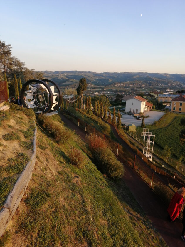 Questo dimostra, qualora ce ne fosse ancora bisogno, quanto i privati possano essere propulsori di cultura e bellezza, come anche ad esempio, la Fondazione Palazzo Strozzi fa altrettanto brillantemente. Sì, perché Patrizia Sandretto Re Rebaudengo, una novella Isabella d’Este, ha trasformato questo luogo non facilmente raggiungibile, un’ora esatta da Torino, ma fantasticamente agognato, percorrendo la strada tra filari d’uva, dolci colline, tramonti tizianeschi, in un Paese delle Meraviglie.