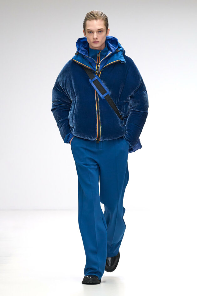Uno spazio bianco e asettico diventa il luogo perfetto per presentare la nuova Collezione autunno/inverno 24-25 di K-Way. Il marchio italiano torna a sfilare alla Milano fashion week e mette l’accento su una delle sue caratteristiche peculiari: l’uso del colore. “Usare il colore era un modo per raccontare la storia del brand”, ha spiegato Lorenzo Boglione, vicepresidente del gruppo Basicnet a cui fanno capo oltre a K-Way anche Superga, Sebago, Robe di Kappa e Jesus Jeans e che ha chiuso il 2023 con ricavi in aumento a 297,5 milioni di euro. A fare da scenografia alla sfilata, sagome gonfiate dal vento realizzate dall’artista Anna Franceschini nei tessuti tecnici delle giacche iconiche Le vrai 3.0, best seller di K-Way. In passerella grigio, verde petrolio e azzurro si alternano al rosso corallo, al verde militare, al bianco e al ghiaccio. Le forme sono allungate, i pantaloni ampi, i cappotti lunghissimi e le giacche brevi e aderenti. Non mancano completi da uomo nei toni accesi, abiti lunghi super femminili percorsi da zip, logo no logo del marchio, giacche impermeabili con strascico, ma la vera innovazione rimangono i materiali: dal nylon alla pelliccia ecologica nella versione sostenibile, dalla lana a tre strati antipioggia al velluto in seta e viscosa. La parola d’ordine per la prossima stagione fredda è layering ovvero sovrapposizione e l’invito è quello di sperimentare con linee, colori e materiali per ottenere look inaspettati ma sempre funzionali.