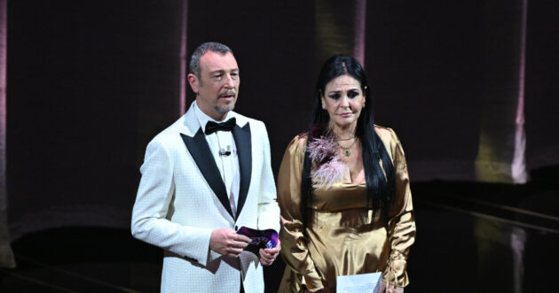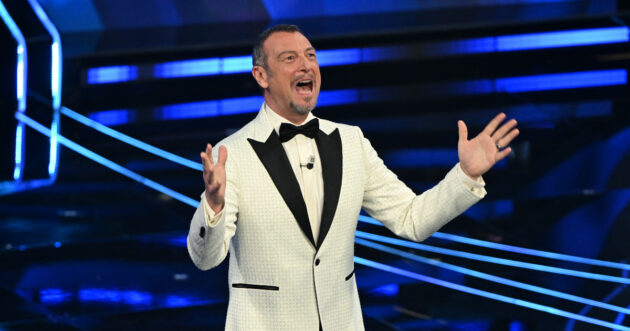 Amadeus inizia in bianco – Si parte con sobrietà. Il conduttore, giunto alla sua quinta edizione, fa il suo ingresso con la prima delle 35 giacche che Gai Mattiolo, il suo stilista di fiducia, ha creato per questo Festival: modello smoking, è bianca con una trama optical delicatissima. Ha preso servizio. Sì, come ‘cameriere del ristorante di una nave da crociera, nella serata di gala’. Voto: 7.