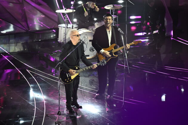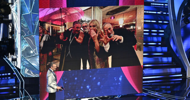 23.03 – Amadeus si collega con l’Aristonello e Fiorello è sotto la pioggia battente: “Pare ci siano i Jalisse tornati a Sanremo dopo 27 anni. Vedete ci sono le sagome… ci sono. Ora tiro su questo lenzuolo e quando lo abbasserò dietro ci saranno i Jalisse. Pronti? 3, 2, 1, giù!” E compare Peppe Vessicchio. Ma poco dopo arrivano anche i Jalisse. “Saliranno sul palco, e questa sera ci sarà una cosa mai accaduta: un duetto tra i due direttori d’orchestra, perché i Jalisse saranno diretti da Leonardo De Amicis e Beppe Vessicchio. Dopo 27 anni ve li meritate”.