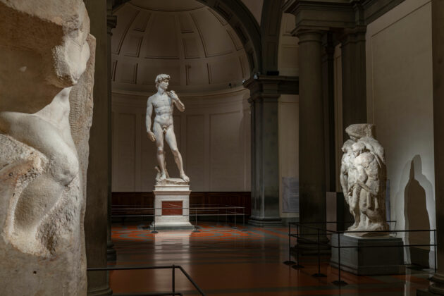 Il capolavoro simbolo, ora tutelato, è nella Galleria avvolto in una nuova luce morbida e preceduto dai due Prigioni michelangioleschi, i famosi incompiuti che esaltano ancor più la perfezione delle forme del David. Ricorda la direttrice, quando volle ospitare insieme “i tre uomini più belli d’Italia”: i due Bronzi di Riace, in gigantografia, e il “nostro” David.