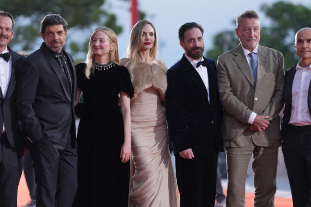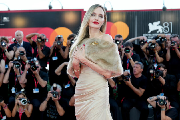 Flash impazziti alla Mostra del Cinema di Venezia per Angelina Jolie, protagonista del film “Maria” di Pablo Larraín, in concorso. La pellicola narra l’ultima settimana di vita del celebre soprano Maria Callas. Nel suo abito color champagne con strascico, l’attrice ha sfoggiato un look da vera diva di Hollywood: spalle scoperte velate da una stola di pelliccia, capelli sciolti e un rossetto rosso fuoco. Subito dopo di lei il regista, Pablo Larraìn in un elegante completo scuro.