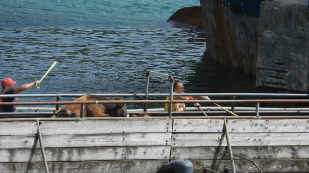 È la prima volta che Essere Animali pubblica un’indagine di questo tipo. Siamo stati in Croazia, nel porto vicino alla città di Trget, sul fiume Rasa, dove abbiamo filmato lo scarico dai camion e il carico sulle navi degli animali. Lungo il percorso tra camion e nave, animali che hanno sopportato viaggi lunghi ed estenuanti vengono obbligati ad avanzare a colpi di bastone o tramite taser elettrico. Alcuni ovini zoppicanti vengono trascinati a bordo per una zampa, patendo ulteriore stress e sofferenze.