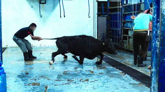 Insieme ad Animal Welfare Foundation abbiamo poi filmato lo scarico degli animali e il trattamento che subiscono nei macelli di Libia e Libano, dove viene loro tagliata la gola senza stordimento e quindi con gravi sofferenze. In diverse occasioni viene documentato che la macellazione avviene senza la presenza di veterinari, e anche quando sono presenti non fanno nulla per evitare crudeltà e sofferenze agli animali.