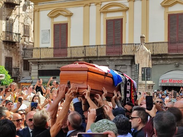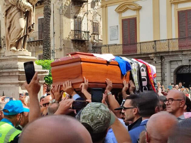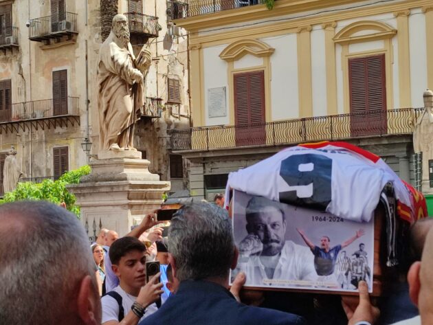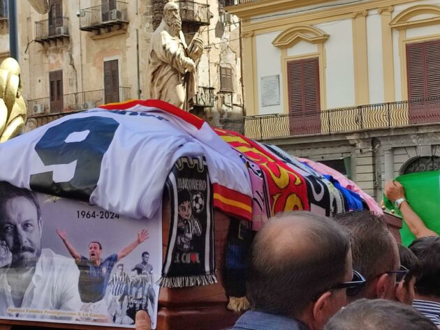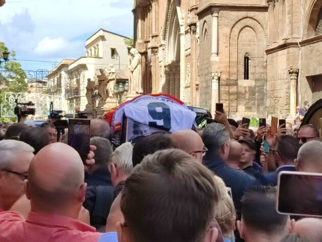 Cattedrale di Palermo piena di gente per l’ultimo saluto a Totò Schillaci. Oggi si celebrano i funerali del bomber di Italia 90, morto a 59 anni lo scorso 18 settembre. Ieri e l’altro ieri la camera ardente è stata visitata da migliaia di parenti, amici e soprattutto tifosi. In chiesa circa mille le persone presenti, 800 posti a sedere e 200 in piedi nei transetti. La maggior parte delle persone che volevano assistere è rimasta fuori, senza far mancare il suo calore e affetto.