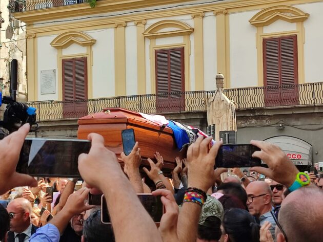 Migliaia di persone hanno anche seguito il corteo della salma di Totò Schillaci, che ha attraversato le strade del Cep, il quartiere d’origine, dove vive ancora Mimmo, il padre dell’attaccante scomparso. Tanti i residenti presenti, di tutte le età, a cominciare dagli studenti dell’istituto comprensivo “Giuliana Saladino”. Molti al passaggio dell’eroe di Italia ’90 hanno pianto e intonato cori da stadio e “Notti magiche”, di Gianna Nannini ed Edoardo Bennato, la storica colonna sonora dei Mondiali italiani.
