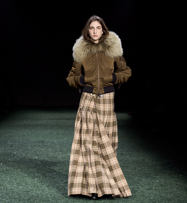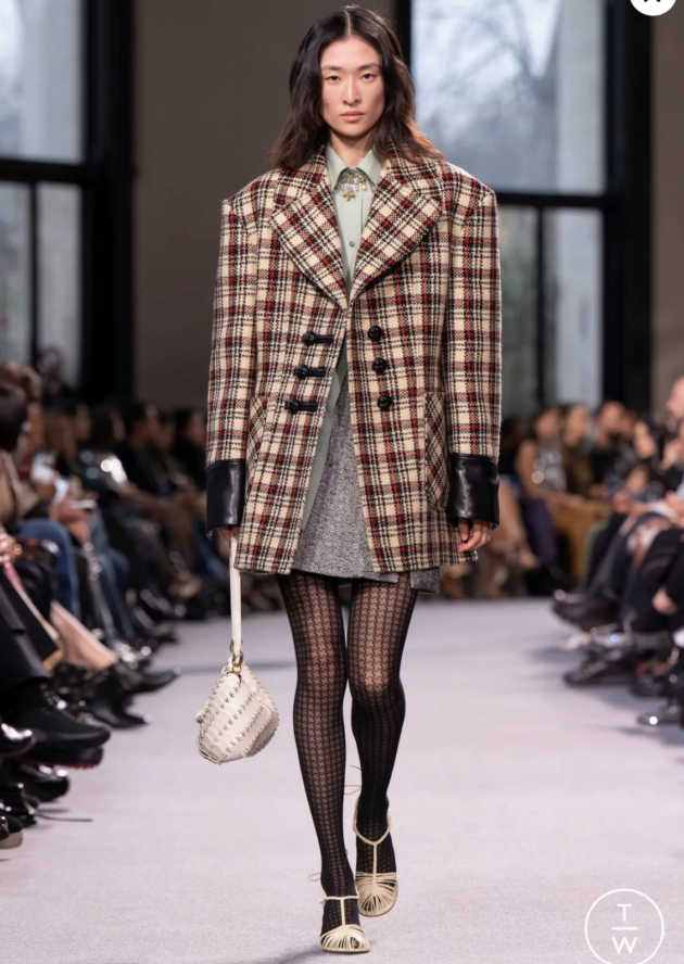 In momento in cui la moda sembra vivere di grandi amarcord, tra il ritorno (e forse ormai già passato) dell’ Y2K e il successo social del Garden core che rievoca atmosfere bucoliche di vita lenta, non sorprende che le ultime passerelle abbiano attinto direttamente dall’archivio di Her Majesty. D’altra parte, Dior ha scelto proprio la Scozia, in particolare il castello di Drummond, per far sfilare la sua Cruise 2025, in cui i rimandi e le suggestioni a questa terra sono proprio il leit motiv delle collezione. Per la collezione Autunno-inverno 2024/2025 Burberry ha reso maxi le gonne a pieghe in tartan, ha reinterpretato i volumi dei capispalla e ha trasformato i foulard in un accessorio cult e genderless. Sulle passerelle autunnali di molti brand, ma su tutti Bottega Veneta e Altuzarra, è stato un susseguirsi di giacche caban dai volumi cocoon e trench, spesso oversize. Rabanne, invece, per questa stagione, rivisita il Balmoral style con influenze western dove a far da padrone sono proprio il tartan e il principe di Galles in un layering di tessuti e fantasie. Ma a sancire il Balmoral style come trend dell’autunno è stato il brand Miu Miu che a Balmoral e alla Regina Elisabetta II ha dedicato un’intera collezione in cui convivono elementi classici dello stile British e accostamenti vintage, definendo un’estetica sempre più libera e accattivante. Qui convivono maglie stretch con il motivo Argyle con quelle lavorate a trecce, felpe con zip con completi in popeline, scarpe stringate e slippers, oltre alle borse reinterpretate in Principe di Galles. Non a caso, Miuccia Prada, direttrice creativa di Miu Miu, una volta definì la defunta Regina “una delle donne più eleganti del mondo”.