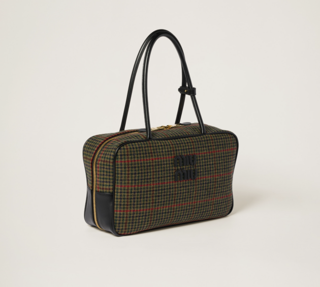 – Miu Miu, Bauletto Beau in tartan con dettagli in pelle