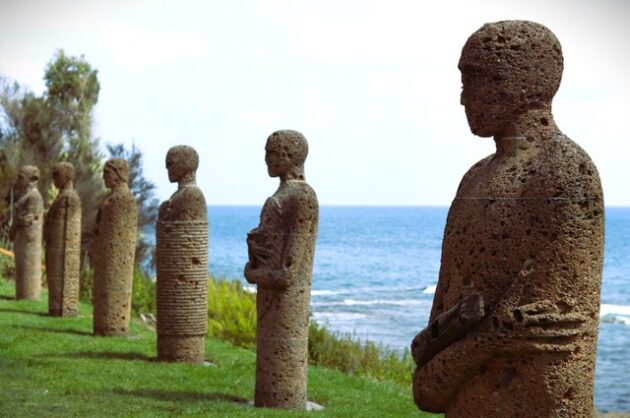 Nelle stesse ore a una manciata di kilometri di distanza sulla spiaggia di Acciaroli i testimoni muti di Mimmo Paladino, il padre della transavanguardia, richiamano le sculture dell’isola di Pasqua e sembrano evocare l’impassibilità del genere umano. Sentinelle arcaiche con le spalle al mare e spalle al muro dell’indifferenza. Curatore l’eclettico gallerista di Casa Madre Eduardo Cicelyn che ha voluto anche ricordare il sindaco/pescatore di Pollica Angelo Vassallo, barbaramente ucciso dalla Camorra per essersi opposto al “sistema”. Una installazione molto cinematografica, sette grandi sculture di tufo se ne stanno lì in mezzo all’infinito dove ancora batte forte il cuore della Magna Grecia. Ravello/Acciaroli, un gemellaggio ideale unite dalle note del genere musicale EtnoWorld che utilizza strumenti tipici del Cilento mentre il borgo di Torello si infiamma di fuochi d’artificio. E anche gli dei si mettono in ascolto.