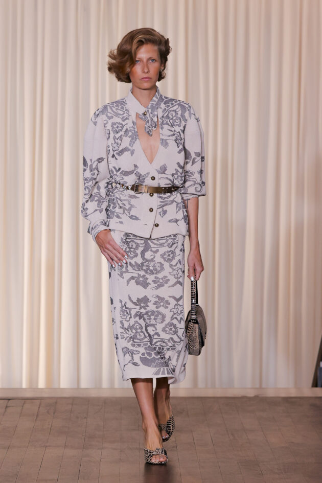 Emblematiche, in tal senso, le collezioni di Loewe e Vivienne Westwood, dove il massimalismo e l’audace sperimentazione tipici dei due brand lasciano il passo ad un’inedita essenzialità. “Volevo che le cose fossero ariose, leggere, ridotte nei colori. Giusto un tocco di rosso e rosa. Nessuna stampa, maglieria super fine, abiti preziosi – a volte, lavati e indossati”, spiega Andreas Kronthaler, vedovo della stilista Vivienne Westwood e direttore creativo del marchio da lei fondato. Parole che riecheggiano quelle di Jonathan Anderson e la sua visione per la prossima estate: “Cosa succede quando rimuovi tutto il rumore? È possibile riempire una stanza bianca vuota, attirando l’attenzione, senza gridare allo spazio?”. Ovviamente gli è possibile eccome, semplicemente giocando con le silhouette e i volumi. Le scarpe Oxford si allungano, mentre gli orli degli abiti si accorciano. La pelle, essenza stessa di Loewe, diventa l’elemento chiave della collezione, si plasma seguendo linee curve e dà vita ad abiti, blazer e cappotti che definiscono i contorni di una riduzione radicale e rivelano il linguaggio più puro di Anderson.