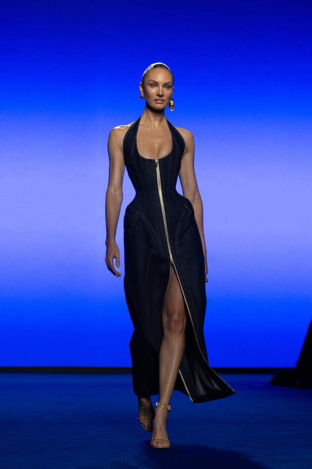 Ancor più emblematico, in tal senso, il lavoro di Daniel Rosberry da Schiaparelli. Dimenticate le scenografiche teste di leone o le donne-robot a cui ci ha abituati nell’Alta Moda: per la sua quarta collezione di prêt-à-porter lo stilista texano crea un guardaroba quasi minimalista, dove i simboli chiave della maison – le serrature, i corsetti, l’aragosta – sono il dettaglio, non il centro del look. “La couture è il mio laboratorio creativo, ma con il ready-to-wear volevo creare abiti che potessero entrare davvero a far parte della quotidianità dei nostri clienti”, ci spiega lo stilista nel backstage della sfilata tenutasi in Place Vendome.” Volevo fare qualcosa che fosse abbastanza forte da poter essere mostrato, ma che fosse abbastanza reale esser prodotto in serie e indossato in vacanza, cosa che per i nostri standard è stata una sfida“. Una sfida che Rosberry ha decisamente vinto, riuscendo nell’impresa di creare una collezione che fosse intergenerazionale, desiderabile e portabile sia dalle madri che dalle figlie, il tutto con l’obiettivo di diventare “il vintage del futuro”. Protagonista indiscussa è la maglieria, patrimonio sartoriale della maison: chic e confortevole, originale e sofisticata, si declina in una gamma eclettica di piqué, coste leggerissime e tonalità perlescenti. Il denim è protagonista, e spiccano le rivisitazioni degli archetipi dell’abbigliamento maschile, come la canottiera, la polo da tennis e la camicia bianca in piqué, rese iper-femminili da invisibili corsetti elasticizzati che ne sovvertono le forme. Le silhouette sono nette, maxi spalle e vita strettissima. Non mancano i rimandi e le suggestioni, soprattutto agli anni ’90 e a quell’allure di mito con il quale li ricordiamo oggi, ma nel complesso sono la freschezza e la leggerezza della collezione a rimanere impressi.