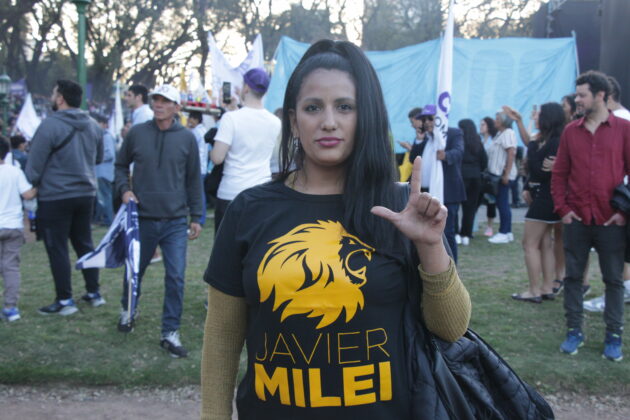 “Per il prossimo anno, riusciremo ad avere i numeri contando sulle nostre forze. Milei rappresenta la possibilità del cambiamento. Lo seguo dall’inizio della sua carriera, quando eravamo in pochi. Adesso invece guarda quanti siamo”, afferma Beatrice, pensionata 66enne avvolta in una bandiera, indicando le persone sedute sugli spalti dell’anfiteatro, dove i sostenitori di Milei sono iniziati ad arrivare lentamente dal primo pomeriggio, che fa fatica a riempirsi. “Chi è venuto qui è sicuro che la situazione migliorerà, anche se ancora ci vuole tempo”, aggiunge mentre alle sue spalle un uomo sventola una bandiera con un dollaro gigante con la faccia del presidente. Javier, 16 anni, lo ha scoperto quando era un personaggio solito agli show televisivi e poi ha iniziato a seguirlo sui social. “Tutta la mia famiglia lo apprezza. Io sono appassionato di scienza politica e trovo le sue proposte interessanti. Sta facendo parlare di noi nel mondo”.