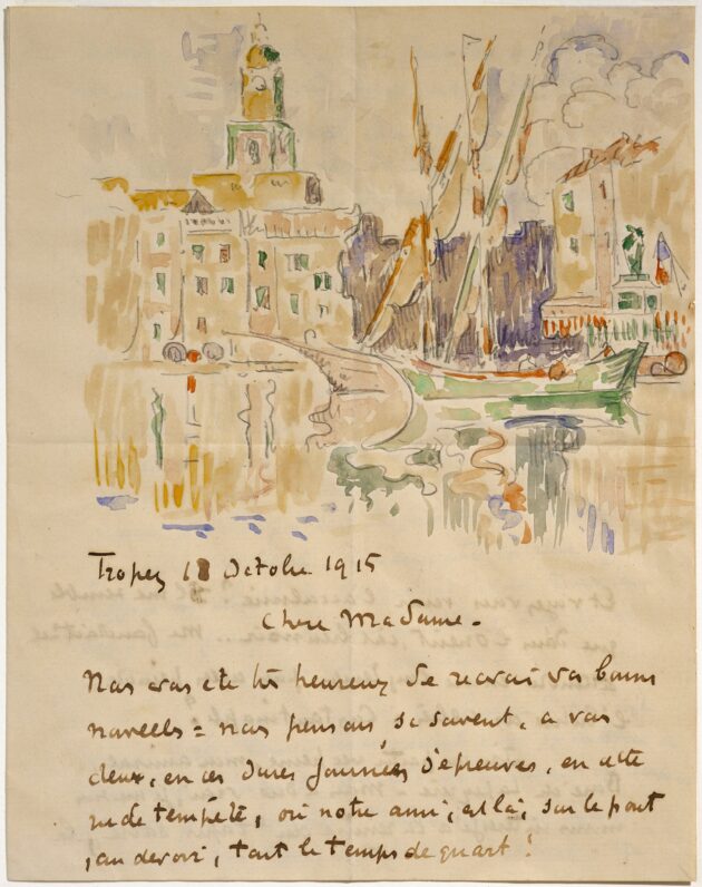 Le lettere di Signac a inchiostro e acquerello raccontano di viaggi diluiti nel ricordo. Non ha un volto ma centomila la Donna con corpetto blu di Edouard Vuillard, l’immagine-guida della mostra, assorta nella dolcezza sommessa delle suggestioni poetiche della gouache. La sezione dedicata a Matisse è “una mostra nella mostra”: il carboncino libera la Danza dalla violenza del colore, mentre sfumano la terra e il cielo in un’allegoria della vita che dissolve i corpi nella musica. Nelle litografie a découpage per il libro Jazz Matisse esclude il sole, dispensatore di morte per Icaro, che sfiora l’infinito tra le stelle per pochi lunghissimi istanti prima di piombare nell’abisso.