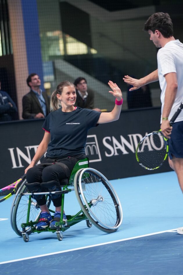 Il tennis è di tutti e per tutti. Lo sport che in Italia sta conoscendo un boom di popolarità grazie a Jannik Sinner, può diventare anche un importante veicolo di inclusività. Lo dimostrano gli scambi andati in scena venerdì pomeriggio durante le Nitto Atp Finals, nel campo di allenamento all’interno dell’Inalpi Arena. Intesa Sanpaolo e la Federazione Italiana Tennis e Padel (Fitp) hanno organizzato un’esibizione di wheelchair tennis e una prova di questo sport per il pubblico. Una dimostrazione pratica di come tutti possano avvicinarsi al tennis e la racchetta possa diventare un mezzo di inclusione.