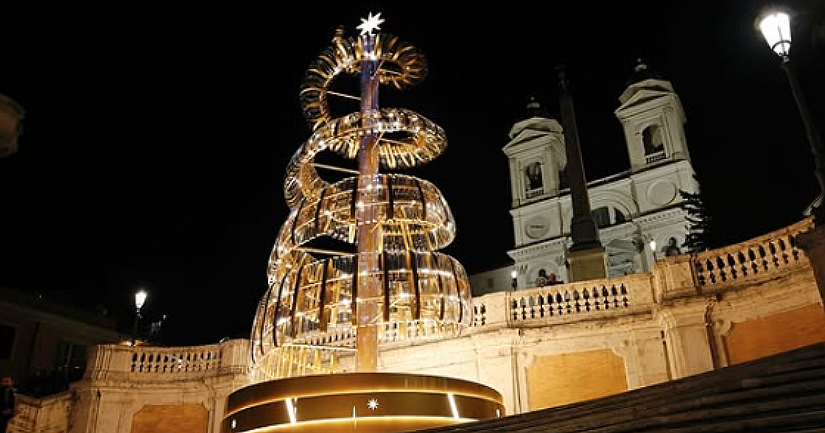 E’ stato inaugurato pochi giorni fa – alla presenza del sindaco, di un coro di bambini e di tutta una serie di rappresentanti istituzionali e vip – un albero enorme, di colore dorato, di forma elicoidale, dalla base massiccia, firmato Bulgari. Azienda che ormai è legata a doppio filo all’amministrazione capitolina per motivi che noi semplici cittadini facciamo davvero fatica a capire. L’albero campeggia in cima alla scalinata di Piazza di Spagna, in una posizione di massima visibilità e prestigio.