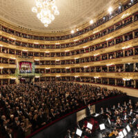 Il violinista Damiano Cottalasso rivela ai più una vecchia storia ben nota ai melomani: “Chi conosce quest’opera di Verdi non pronuncia mai il suo titolo per intero. È solo La forza. Mai dirlo tutto”, dice sorridendo. “Per scaramanzia: è un’opera che ha fama di non portare benissimo”. La Prima in sala è finita infatti malissimo per Leonora, Don Carlo e Don Alvaro. Benissimo invece per i loro interpreti e il direttore d’orchestra Riccardo Chailly, salutati da ripetuti applausi a scena aperta e da dodici minuti di ovazioni finali. Con qualche “Buuuu” per la soprano Anna Netrebko, a cui forse qualcuno non riesce a perdonare di essere nata russa.