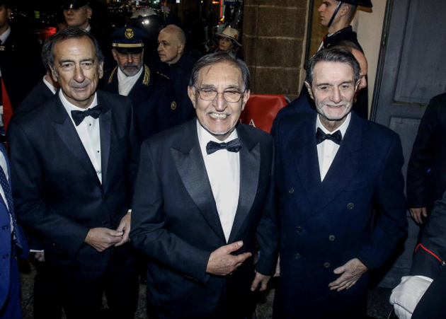 Trionfa il nero, negli smoking degli uomini ma anche nelle mise delle signore. Sobrietà stile Armani per molti. Soprattutto per il potere vero, quello dei banchieri, dei finanzieri, degli imprenditori. Da Gian Maria Gros-Pietro (presidente di Intesa Sanpaolo) a Emma Marcegaglia, da Diana Bracco a Veronica Squinzi (Mapei), da Mario Monti (senza loden) a Giuseppe Castagna, ad di Banco Bpm oggi sotto assalto da parte di Credit Agricole (“Sono molto contento del loro investimento, ma è ancora molto lunga”). Tra il pubblico anche Josep Borrell, rappresentate dell’Unione europea per gli affari esteri.
