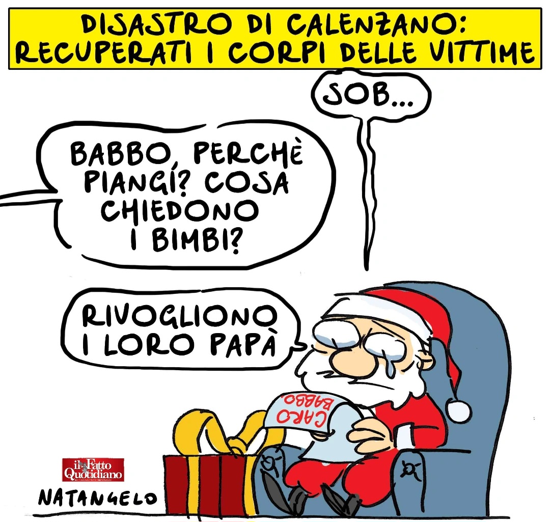 Non è Natale a Calenzano – la mia vignetta per la prima pagina de il Fatto Quotidiano oggi in edicola! #calenzano #esplosione #vignetta #fumetto #natangelo