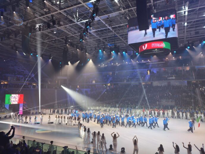 Lunedì 13 gennaio, all’Inalpi Arena, si è svolta la cerimonia d’inaugurazione dei Torino 2025 FISU Games, le Universiadi invernali, cioè le Olimpiadi invernali degli studenti universitari. La cerimonia – a cui ho assistito – è iniziata alla 19.30 con quasi tre ore di sfilata degli atleti in gara, esibizioni circensi, numeri di magia, giochi di luci, illusionisti, acrobati, coreografie intorno alla dipendenza digitale (col monito a staccarsi dallo smartphone, un attimo prima dell’“ora prendiamo il telefono, accendiamo le torce e accogliamo il prossimo artista”…). Particolarmente toccante è stato il concerto di Giovanni Allevi, che dalla musica dance ha portato il pubblico sulle note del pianoforte. Ha accompagnato le note con alcune parole, accostando sport e musica, entrambi spazi di meditazione, fra silenzio e respirazione, mezzi privilegiati per andare oltre i pensieri consueti, per conoscere sé stessi. In mezzo all’esalazione e alle danze, al ritmo emozionale e martellante, il concerto è stata un’oasi imprevista, lenta, commuovente.