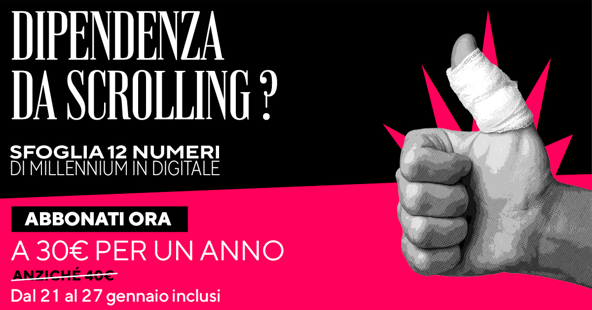 Un prezzo davvero ridotto di fronte all’opportunità di leggere 12 numeri l’anno sull’app del Fatto, in pdf (compreso l’archivio di tutti i numeri da maggio 2017 a oggi) e, in versione navigabile, sul nuovo sito di MillenniuM.