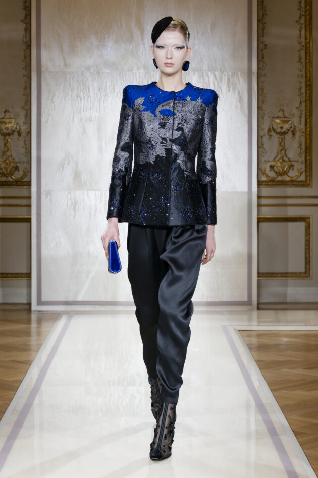 Nelle sale intime e preziose del suo nuovo palazzo in Rue François I, a due passi da Avenue Montaigne, Re Giorgio non si limita a ripercorrere la storia di Privé, ma la reinterpreta e si spinge ancora oltre, superando se stesso e infondendo nuova linfa vitale a quei codici stilistici che hanno reso il suo stile un’icona globale. Non è la prima volta che Armani veste le donne di luce, lo ha già fatto in passato, anche con il prêt-à-porter, ma questa volta la luce diventa protagonista assoluta, un’ossessione quasi, che si riflette nei tessuti cangianti, nelle pietre incastonate come gemme preziose, nei ricami che sembrano pennellate di colore su una tela.