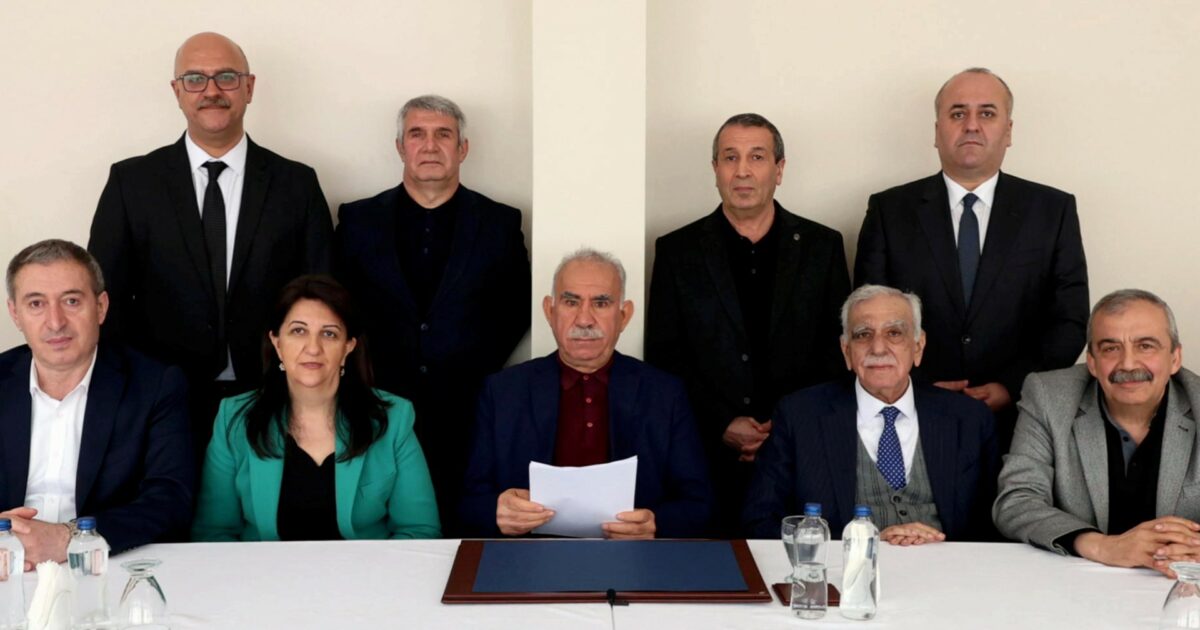 La delegazione includeva Ahmet Türk, Pervin Buldan, Sırrı Süreyya Önder, Tülay Hatimoğulları, Tuncer Bakırhan, Cengiz Çiçek e membri del partito, nonché Faik Özgür Erol.