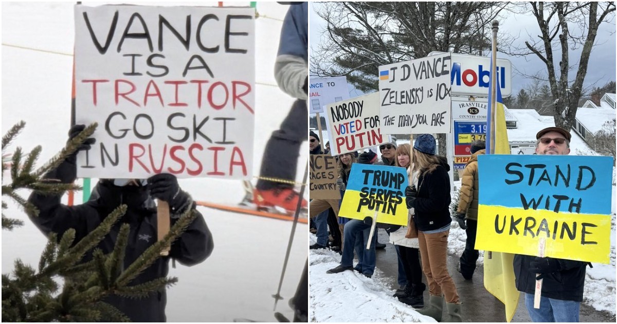 Un comitato d’accoglienza che sicuramente il vicepresidente Usa JD Vance non aveva mai visto prima. Centinaia di abitanti del Vermont si sono accalcati lungo le strade imbracciando cartelli e scandendo slogan contro il corteo di auto che stava portando il vice di Trump sulle piste da sci, allo Sugarbush Resort, l’indomani della lite con Zelensky nello Studio Ovale.