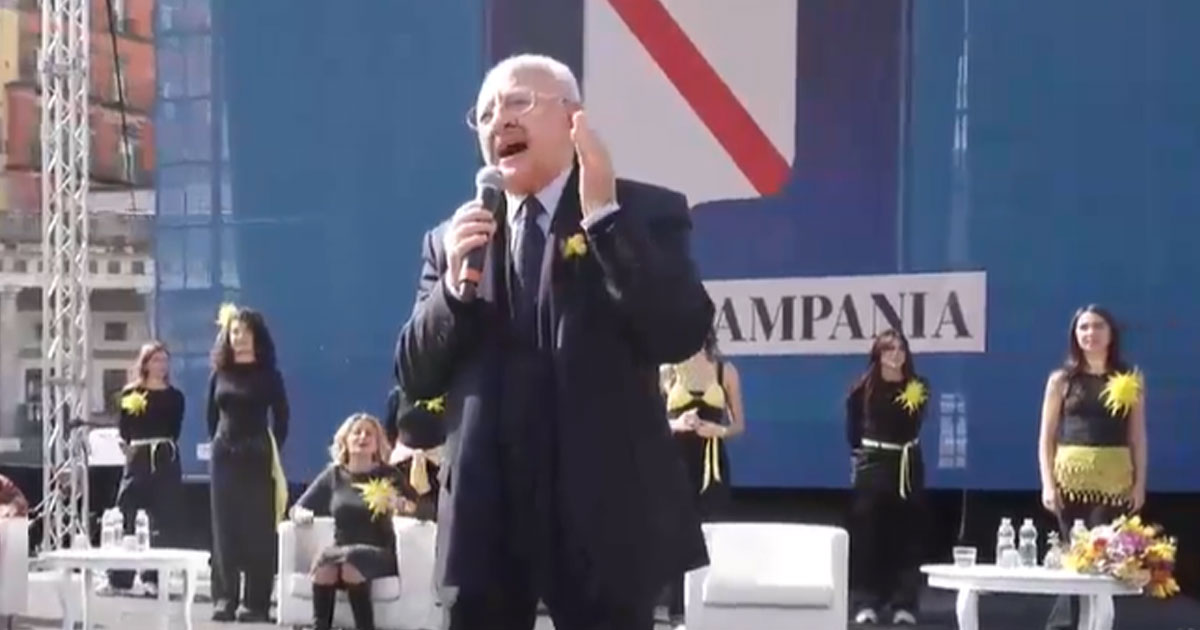 “La prima cosa che vorrei chiedervi è mandare un grande abbraccio e un grande augurio a un grande vecchio che sta lottando per la vita. Si chiama Papa Francesco. Un grande saluto dai giovani di Napoli e della Campania perché si possa riprendere e perché è stato un uomo di pace”. Così il presidente della Regione Campania, Vincenzo De Luca, comincia il suo intervento dal palco di piazza del Plebiscito a Napoli, rivolgendosi agli studenti che hanno partecipato al flash mob “Bella così”, organizzato dalla Regione in occasione della festa della donna.