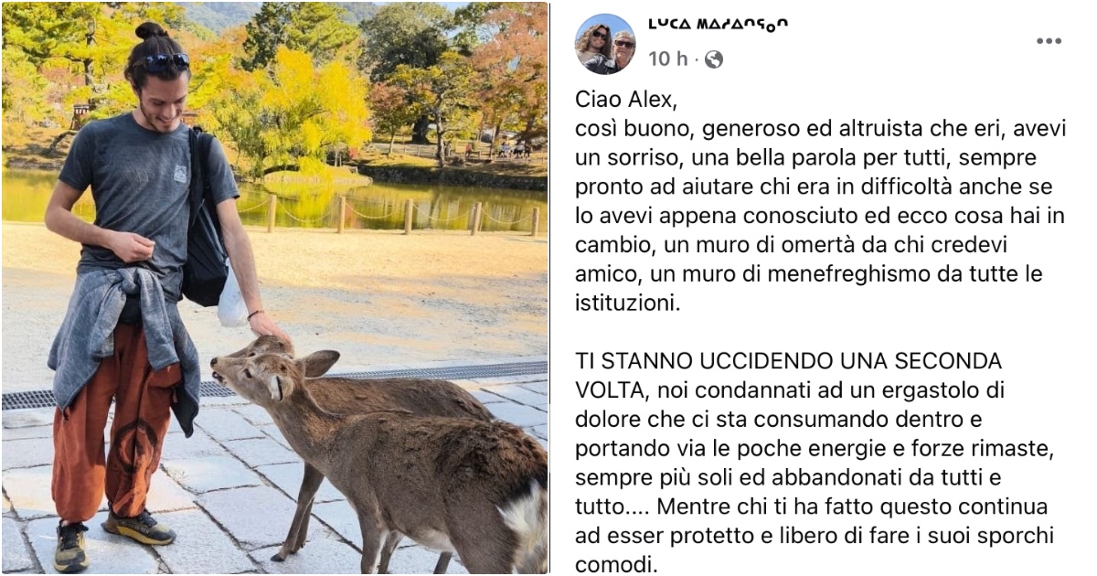 Alex Marangon è morto dopo un volo di 15 metri dalla balaustra dell’ex abbazia sulle rive del Piave, dove si trovava per partecipare a un rito sciamanico. Una vicenda ancora avvolta nel mistero, che lascia troppi interrogativi senza risposta. “Noi condannati a un ergastolo di dolore, che ci sta consumando dentro e portando via le poche energie e forze rimaste, sempre più soli ed abbandonati da tutti e tutto. Mentre chi ti ha fatto questo continua ad esser protetto e libero di fare i suoi sporchi comodi”scrive il padre. Parole che trasmettono il senso di frustrazione di una famiglia che non si vuole arrendere a credere alle ipotesi formulate. Luca Marangon ricorda il figlio come “così buono, generoso ed altruista che eri, avevi un sorriso, una bella parola per tutti, sempre pronto ad aiutare chi era in difficoltà anche se lo avevi appena conosciuto, ed ecco cosa hai in cambio, un muro di omertà da chi credevi amico, un muro di menefreghismo da tutte le istituzioni. Spero esista almeno una giustizia divina. Riposa in pace dolce angelo”.