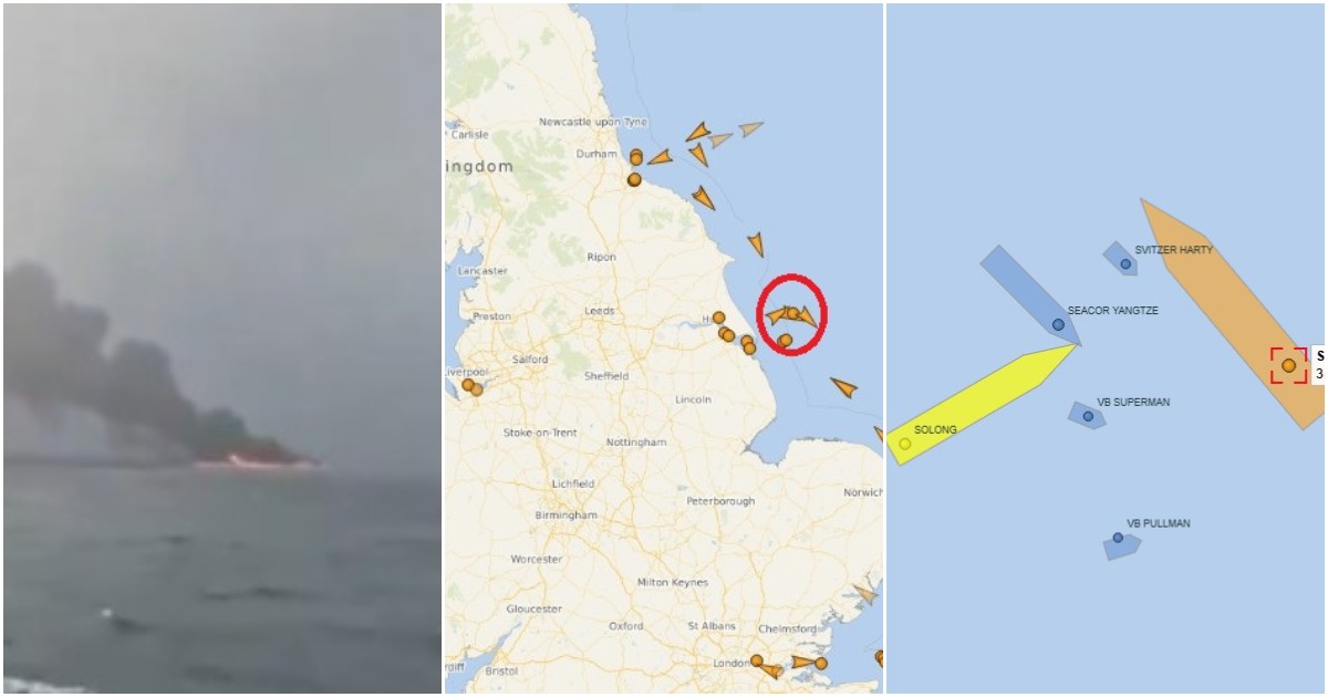 Collisione nel Mare del Nord, di fronte al porto di Hull. La nave che trasportava greggio era praticamente ferma, mentre il cargo (di bandiera portoghese) le è finito contro. Tutti i marittimi sono stati portati in salvo