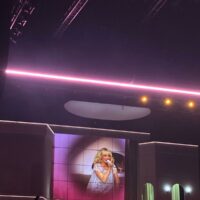 Mentre l’Arena esplode per i fan che saltano scatenati sul tormentone che ci ha accompagnato per tutta l’estate, ci portiamo a casa la sensazione di aver vissuto un grande rituale collettivo, gioioso e liberatorio. Concerti come questo sono uno spazio sicuro, accogliente e gioioso: un luogo dove si può ballare in modo stupido e cantare a squarciagola con un fiocco in testa a 15 come a 51 anni. Un posto dove fiocchetti e glitter non sono infantili o ridicolizzati, ma sono un modo per divertirsi e sentirsi, almeno per una sera, leggeri. Vale per le donne e per gli uomini che sì, c’erano, e si scatenati come tutti. Nessuno spinge, nessuno è molesto, nessuno rovina la serata agli altri. Quando una ragazza si siede per terra per un calo di pressione, quattro sconosciute le fanno un capannello attorno per evitare che chi balla le finisca addosso. Nell’aria c’è quel sentimento di “girlhood” che prescinde dall’età ed è fatto di solidarietà, sorellanza, divertimento, emancipazione. Riappropriarsi della gioia di essere ragazze non come una debolezza, ma come un superpotere. Ma volete mettere la bellezza di urlare a pieni polmoni: “I don’t give a f*** about you?” Metteteci chi volete in quel “you”, funziona lo stesso.
