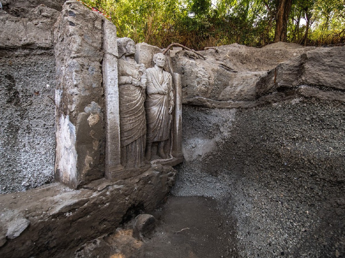 Le due sculture ad alto rilievo sono state trasferite presso la Palestra grande degli scavi per avviarne il restauro e saranno tra i reperti di particolare spicco in esposizione nella mostra “Essere donna nell’antica Pompei” che inaugurerà il 16 aprile prossimo. I visitatori potranno contestualmente osservare i delicati interventi del restauro, che sarà condotto durante la mostra. L’area indagata a partire dal luglio 2024 corrisponde ad una zona scavata negli anni ’90 per la costruzione del doppio binario della Circumvesuviana. Gli scavi del 1998 avevano già registrato la presenza di oltre 50 sepolture a cremazione, segnate da stele e da un monumento funerario ad arco. Le indagini recenti hanno portato alla luce una tomba monumentale costituita da un ampio muro con diverse nicchie sormontate da un rilievo di una figura femminile e una maschile, forse una coppia di sposi.