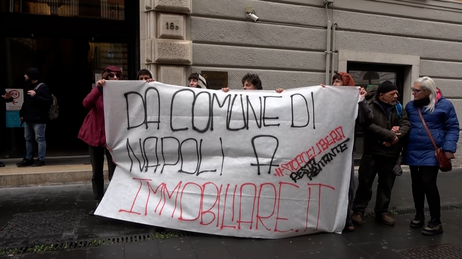 Sit-in della Campagna Resta Abitante davanti alla sede del Consiglio Comunale di Napoli. I manifestanti hanno protestato contro gli affitti turistici e l’elevata presenza di B&B, che penalizzano il mercato immobiliare con “prezzi alti e talvolta rendendo quasi impossibile trovare una casa soprattutto nel centro storico della città”. Gli attivisti hanno contestato il sindaco Manfredi e la recente delibera che “permette di utilizzare le case soprattutto a scopo finanziario non aiutando i poveri della città”.