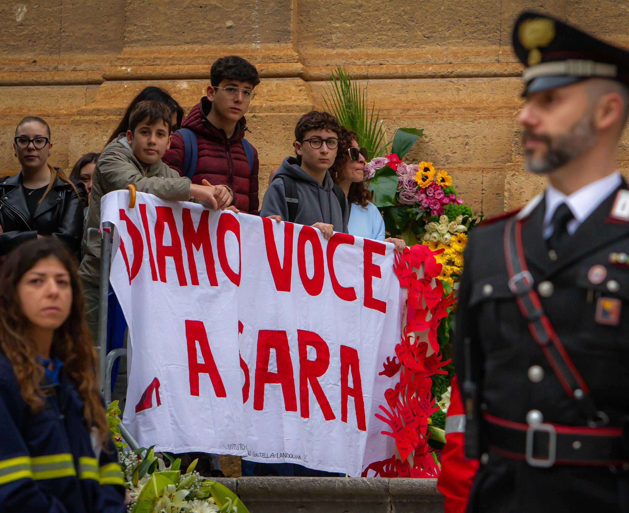 “L’amore non uccide. È assurdo. Nel corpo di Sara piangiamo il destino dell’umanità quando essa sceglie la violenza, la morte. Non ci sono parole per consolare il vostro strazio, cari genitori. Siamo in silenzio con voi. E vi doniamo le nostre lacrime. L’intera famiglia umana oggi piange Sara. E noi qui, stamattina, anzitutto la consegniamo ad un Corpo che è stato anch’esso martoriato e ucciso: il Corpo crocifisso di Gesù di Nazareth. Ucciso con violenza da uomini che non sapevano quello che facevano”. “Sara è stata strappata: tu mamma Cetty, tu papà Alessandro, tu Claudio suo amato fratello. Voi suoi amici – ha aggiunto Lorefice – Solo nostro Signore, che è morto trafitto nell’abbandono della croce, dopo aver squarciato con un grido il silenzio del Padre, solo Lui sa come starvi vicini. In silenzio. Accogliendo il vostro silenzio e il vostro grido, la vostra ribellione e la vostra disperazione. Il vostro desiderio di riabbracciare per sempre Sara. Di comunione eterna, che solo Dio può dare”.