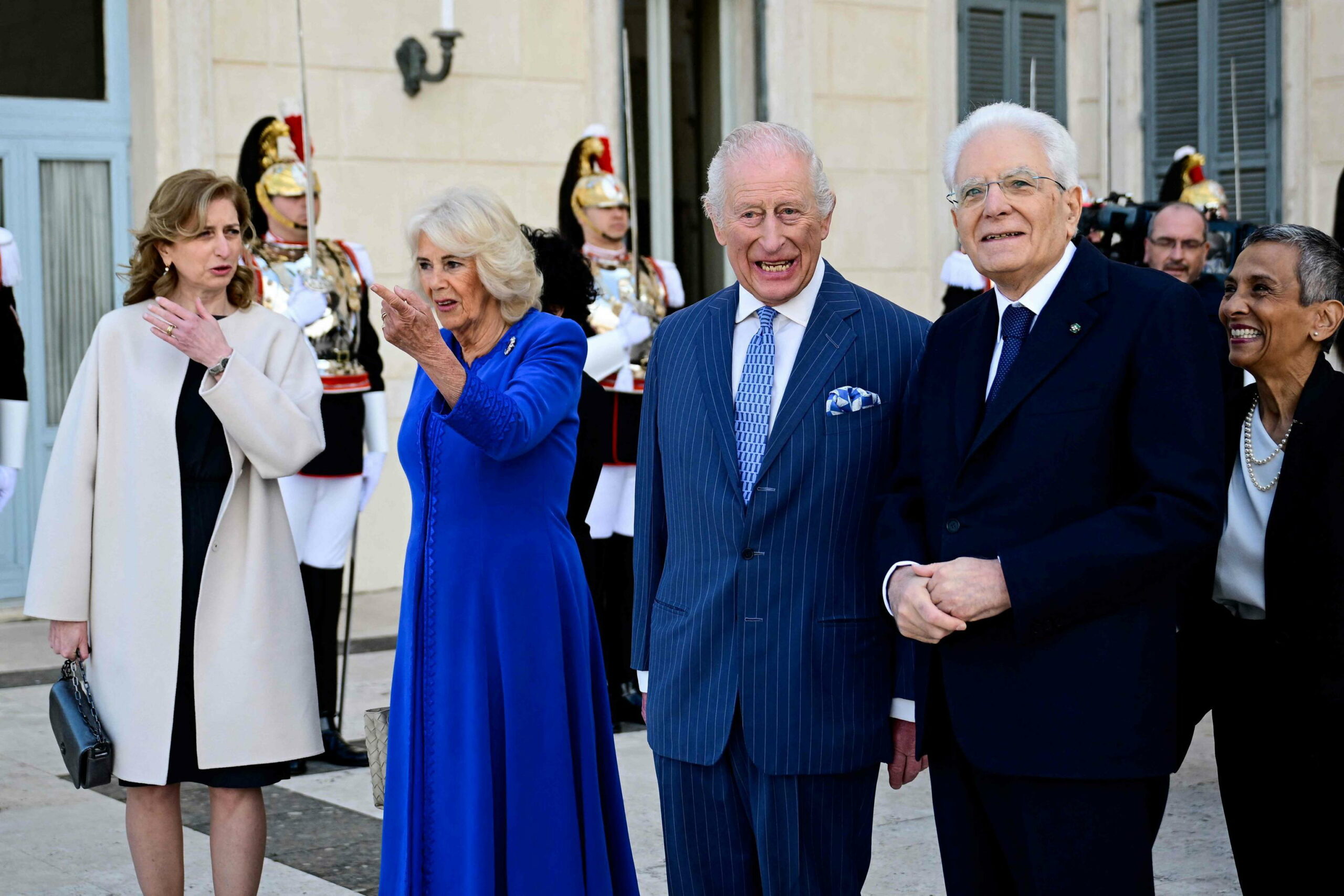 Il passaggio spettacolare di una pattuglia acrobatica formata dalle Frecce tricolori e dalle Red arrows della Raf hanno attraversato il cielo di Roma per salutare l’inizio della visita di Stato di Re Carlo di Gran Bretagna e della consorte Camilla, ricevuti al Quirinale dal capo dello Stato Sergio Mattarella. All’ingresso nella sede della presidenza della Repubblica Carlo III, accolto da 32 corazzieri con l’uniforme di gran gala, è stato accolto da Mattarella e dalla figlia Laura, mentre di lato sono schierati i picchetti delle diverse armi per gli onori militari. Mentre nel cortile d’onore risuonavano gli inni nazionali, la bandiera britannica è stata issata sul torrino del Quirinale ed ora sventola insieme a quella italiana ed europea. Carlo e Mattarella hanno poi passato in rassegna i reparti schierati prima di assistere al passaggio delle pattuglie aree dalla terrazza del Quirinale e dare avvio ai colloqui nello studio alla Vetrata che sono iniziai a 4 (Carlo e Camilla e Mattarella e la figlia Laura) e poi si sono allargati alle delegazioni: per il governo è presente il ministro degli Esteri Antonio Tajani.