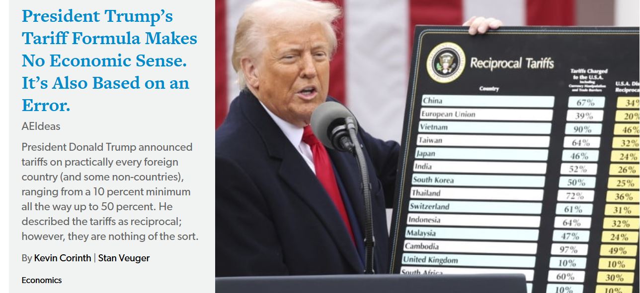 Il problema è che l’amministrazione Trump ha ipotizzato che l’elasticità della domanda di importazioni rispetto ai prezzi sia pari a 4 e l’elasticità dei prezzi alle tariffe sia un bassissimo 0,25: moltiplicandole, il risultato è pari a 1 per cui si annullano. In realtà le tariffe influenzano i prezzi all’import ben di più, notano il vicedirettore del Centro sulle opportunità e la mobilità sociale dell’Aei e il senior fellow del think tank. Non a caso uno degli autori dello studio citato dall’USTR, Alberto Cavallo, su X ha subito fatto notare che quell’elasticità è vicina a 1. Chi ha scritto la formula ha considerato – volutamente? – un altro valore, l’elasticità dei prezzi al dettaglio, che è più bassa.