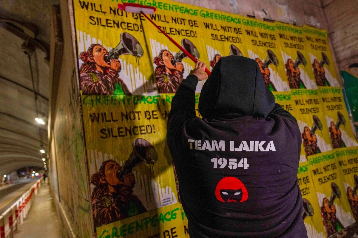 "Il verdetto contro Greenpeace di oltre 660 milioni di dollari è attacco diretto alla libertà di espressione. Vogliono zittirci ma non resteremo in silenzio" afferma la, street artist