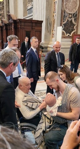 A spingere la sedia a rotelle di Bergoglio era Massimiliano Strappetti, infermiere coordinatore della Direzione di sanità e igiene dello Stato della Città del Vaticano, ma soprattutto assistente sanitario personale del Papa. Francesco era scortato dai Gendarmi Vaticani che, anche durante i trentotto giorni di ricovero al Policlinico Gemelli per una polmonite bilaterale, ne hanno tutelato la sicurezza. Nessuno era stato avvisato, nemmeno all’ultimo minuto, di questa improvvisata papale. Ne erano totalmente ignari perfino il cardinale Mauro Gambetti, arciprete della Basilica Papale di San Pietro, vicario generale del Papa per la Città del Vaticano e presidente della Fabbrica di San Pietro, e il parroco di San Pietro, padre Agnello Stoia. Ugualmente spiazzato dalla visita padre Enzo Fortunato, fino a pochi mesi fa direttore della comunicazione della Basilica Papale di San Pietro, incarico che ha recentemente lasciato per dedicarsi a tempo pieno al nuovo ruolo affidatogli sempre da Bergoglio, quello di presidente del Pontificio Comitato per la Giornata mondiale dei bambini.